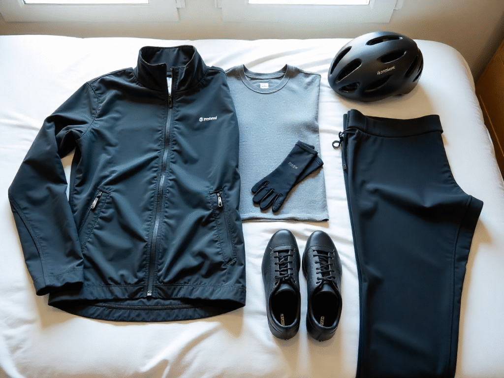 Your base layer? It’s literally any athletic shirt you already own. I’m serious—that tech tee from the 5K you ran in 2019 works perfectly fine. It wicks moisture (fancy term for “doesn’t stay soaking wet”), it dries fast, and you probably have three of them already. Stop researching “cycling-specific base layers” that cost $89 when your $15 running shirt does the exact same thing. This isn’t where you need to spend mental energy or money.