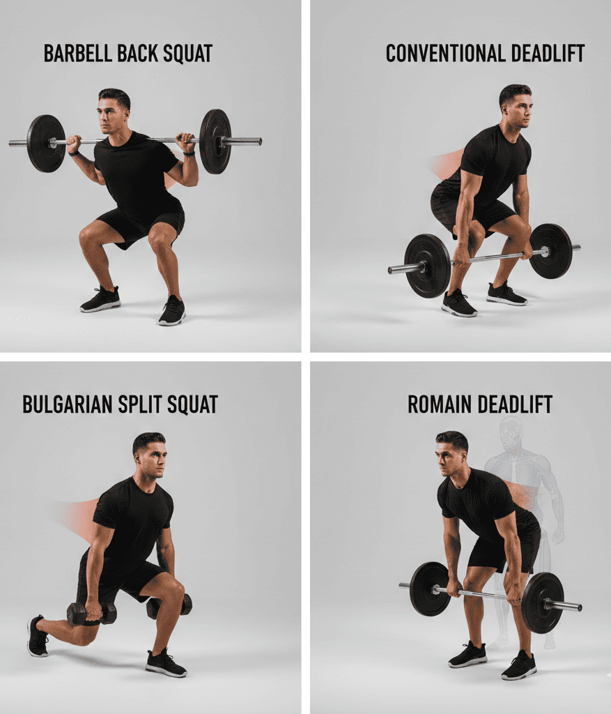 Every article dumps 12+ variations on you—front squats, Romanian deadlifts, Bulgarian split squats, deficit deadlifts, goblet squats, hack squats… and zero explanation about WHEN or WHY.