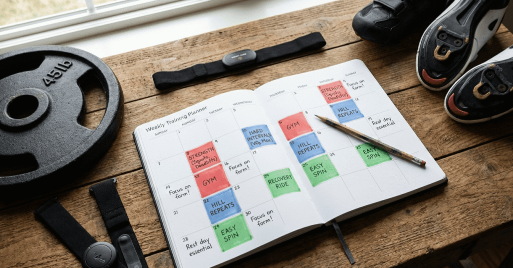 Never—and I mean NEVER—put heavy squats or deadlifts within 48 hours of your hard bike sessions. Treat lifting like you treat intervals: strategic, timed, not randomly scattered across your calendar because you “had time.”