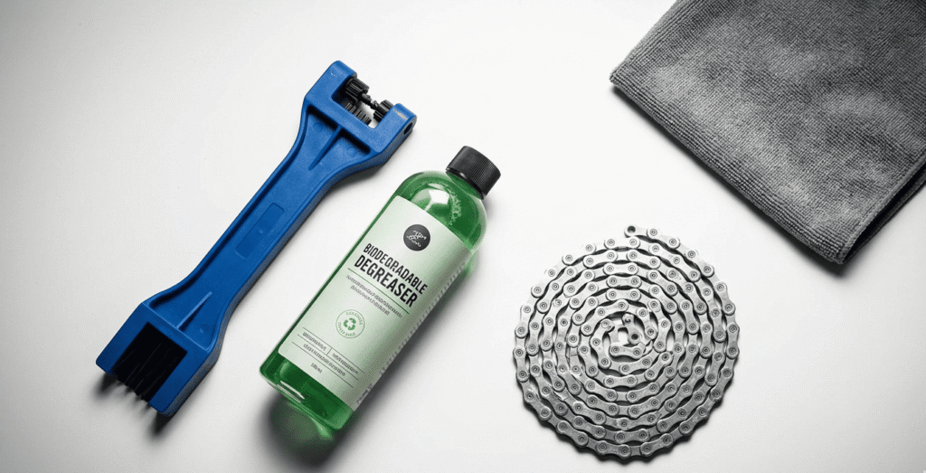 Forget the arsenal. All those brushes, degreasers, specialty cleaners cluttering up your workspace? You need exactly two things: a quality chain cleaning tool and a biodegradable degreaser. That’s it.
