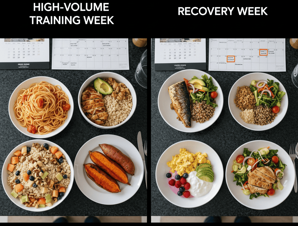 ✅ 4-Week Structured Nutrition Plan – Base, Build, Peak, Taper & Recovery phases